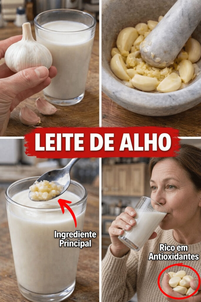 O alho oferece seu sabor marcante e seus compostos naturais, enquanto o leite traz uma base cremosa que suaviza a intensidade do ingrediente principal. O resultado é uma bebida simples, feita com poucos itens que normalmente já estão em casa.