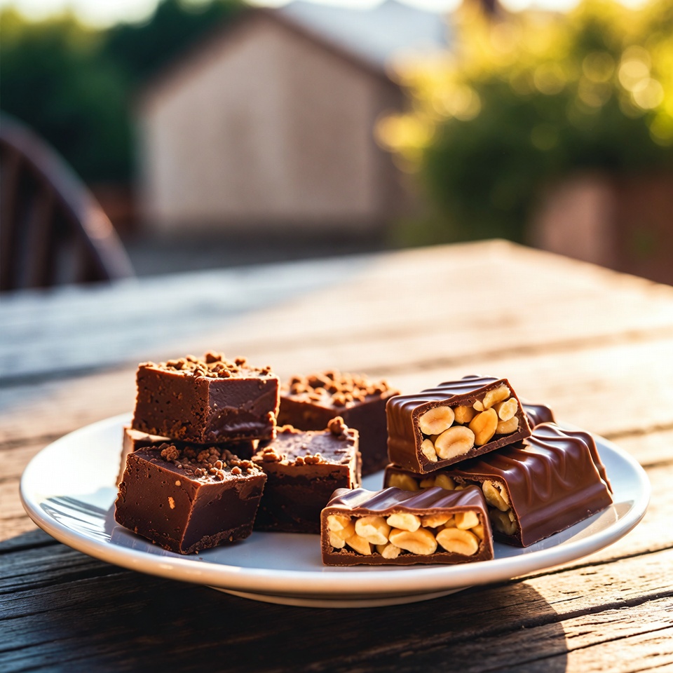 Barras de Chocolate, Caramelo e Amendoim em 4 Camadas