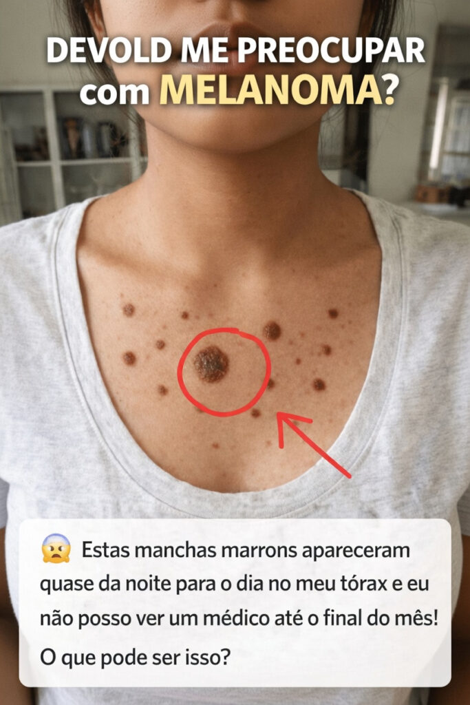 Na maior parte dos casos, manchas marrons repentinas no peito estão associadas à exposição solar, ao envelhecimento da pele ou a lesões benignas, e não ao melanoma. É natural se preocupar, especialmente quando a mudança parece ter ocorrido “da noite para o dia”, mas a maioria das situações semelhantes acaba sendo considerada inofensiva após avaliação médica.