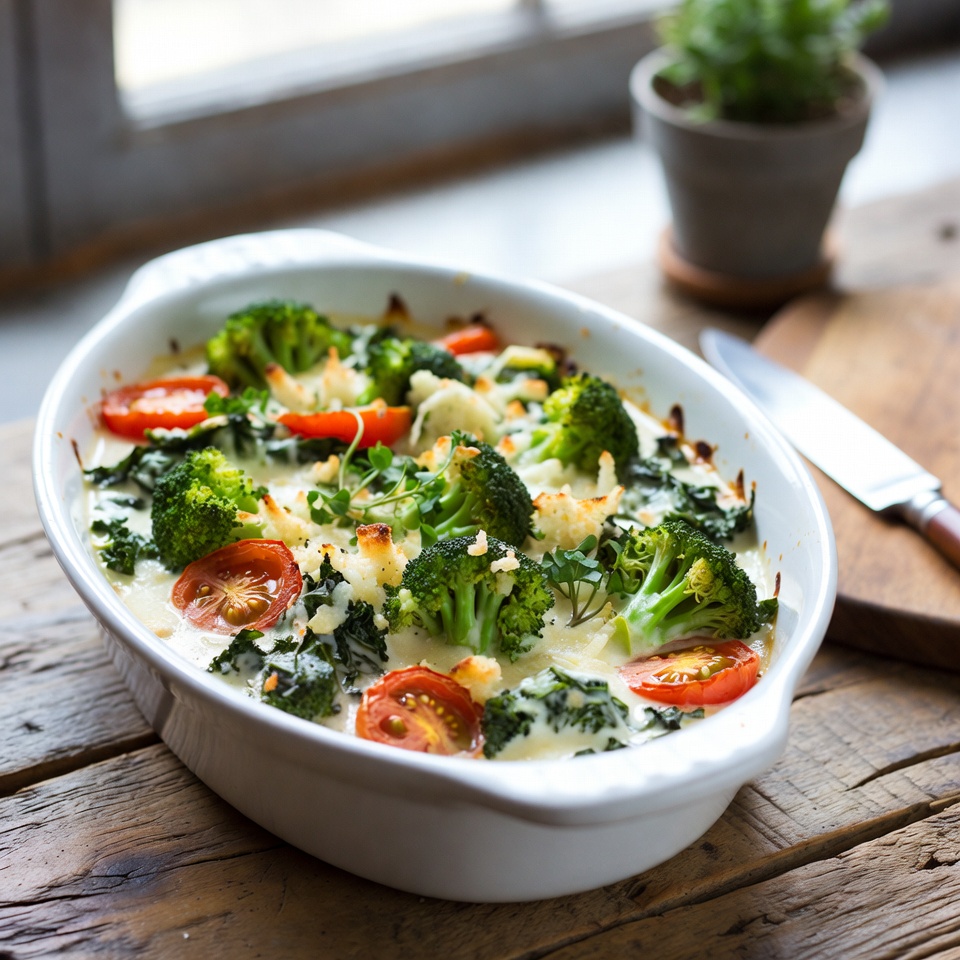 Caçarola Cremosa de Brócolis com Tomate e Couve