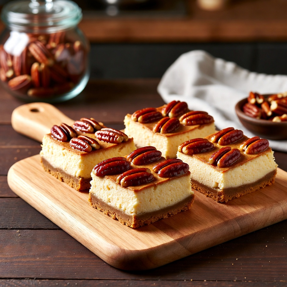 Esses quadradinhos de cheesecake com noz-pecã combinam a cremosidade do cheesecake com o sabor clássico da pecan pie em uma sobremesa prática para servir em pedaços. Ideais para festas de fim de ano, encontros em família ou qualquer ocasião em que você queira uma sobremesa rica e marcante.