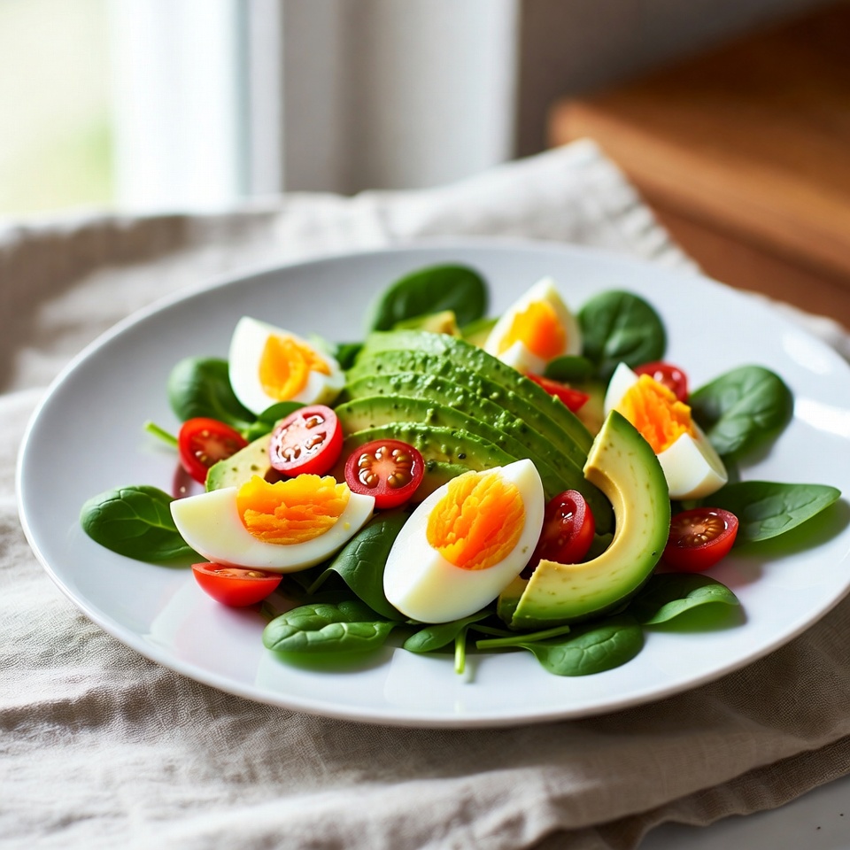 Salada de Ovo com Abacate e Espinafre